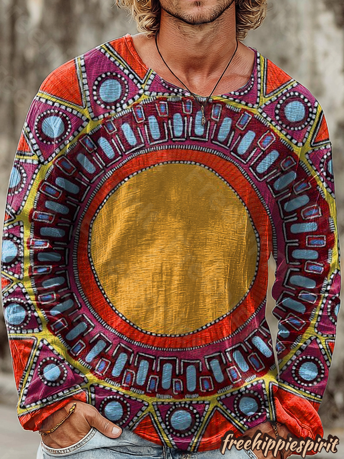 Bohemian Ethnic Pattern Art Print Casual Cotton Shirt