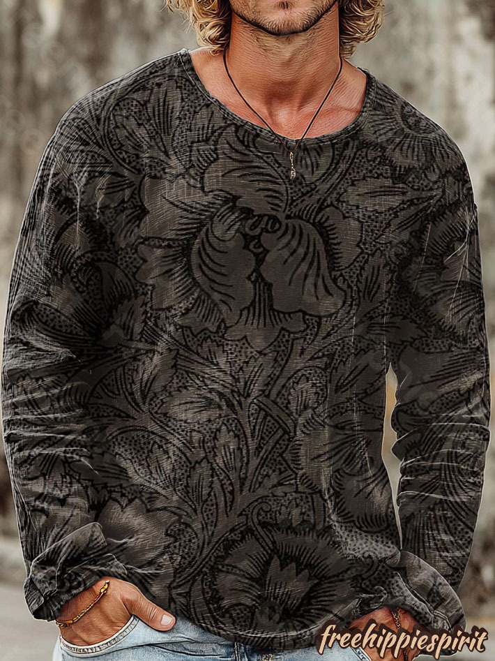 Men's Retro Floral Art Print Casual Cotton Shirt