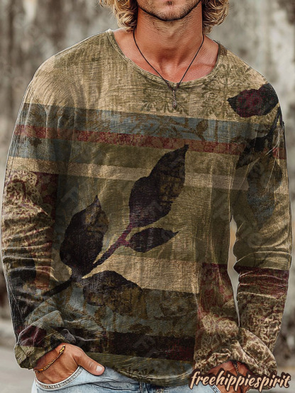 Men's Retro Floral Art Print Casual Cotton Shirt
