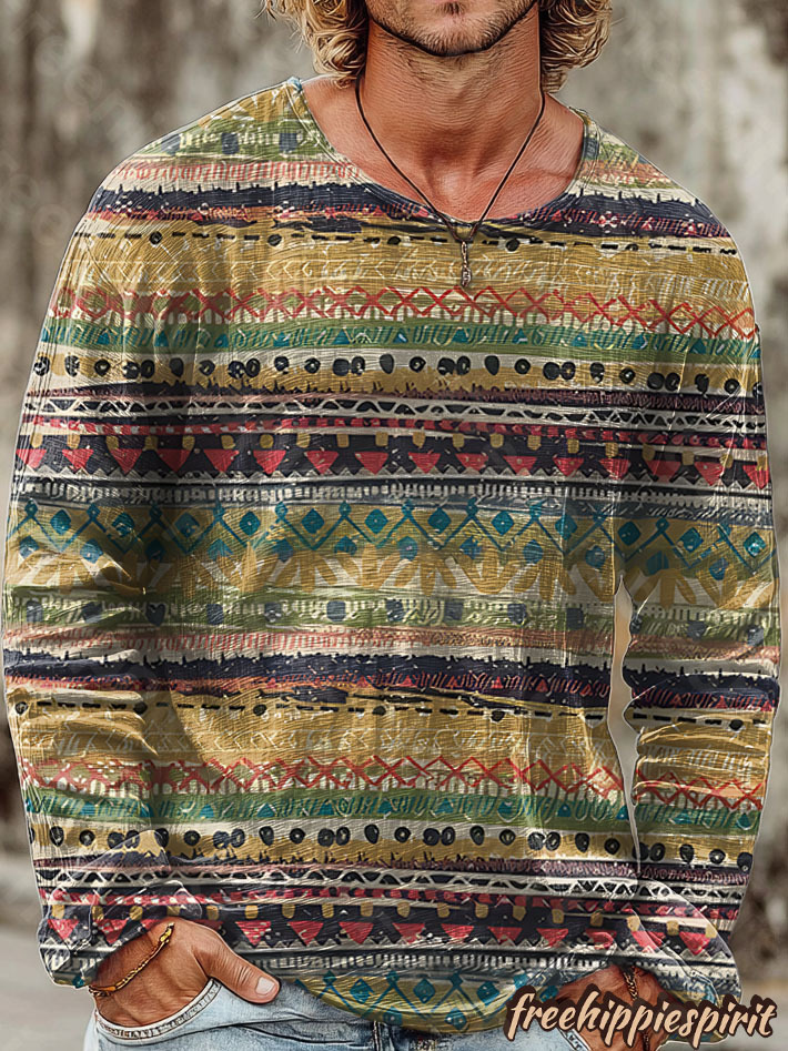 Men's Retro Striped Art Print Casual Cotton Shirt