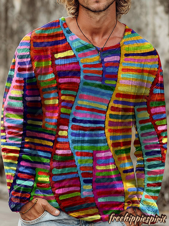 Retro Colorful Pattern Art Print Casual Cotton Shirt