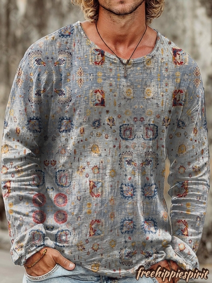 Retro Ethnic Pattern Art Print Casual Cotton Shirt