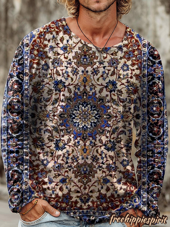 Vintage Ethnic Floral Art Print Casual Cotton Shirt