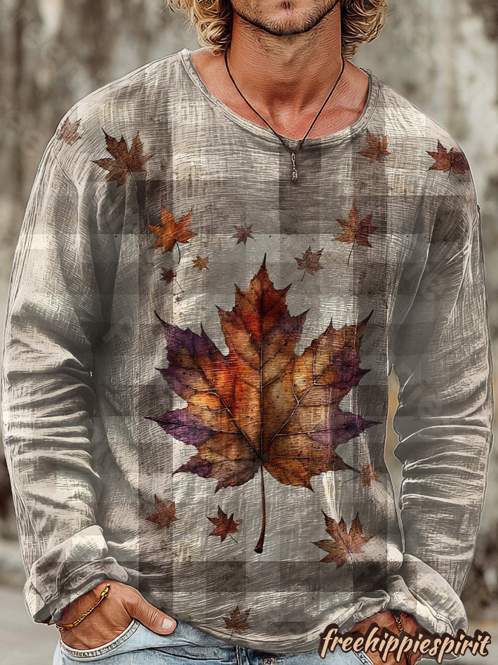Vintage Maple Leaf Art Print Casual Cotton Shirt