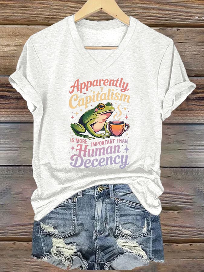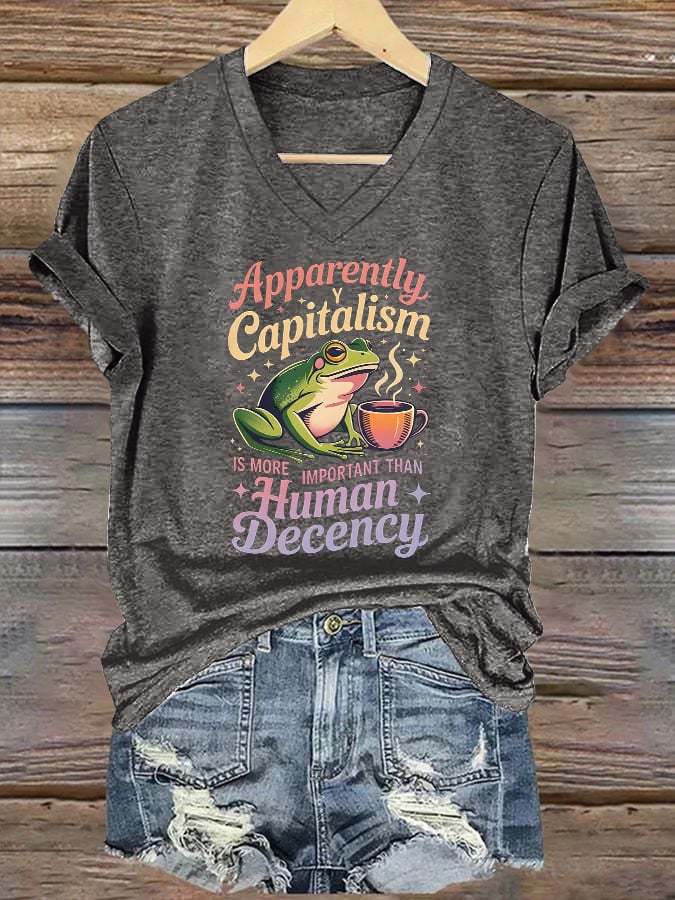 Women's casual print T-shirt: Capitalism is more important than human dignity