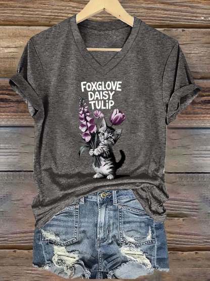 Women's Fashion Casual FDT Cat Printed T-shirt