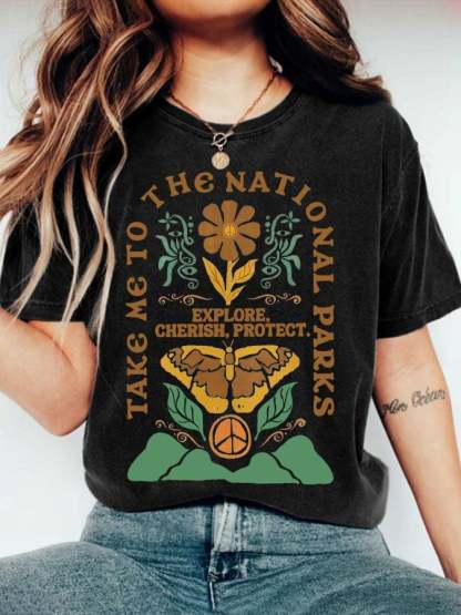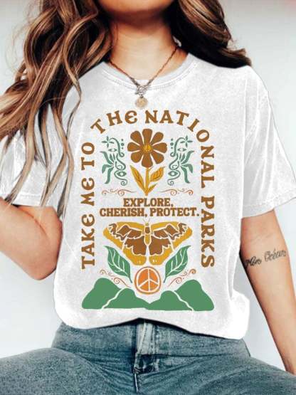 Women's Protect Our National Parks Print Round Neck T-Shirt