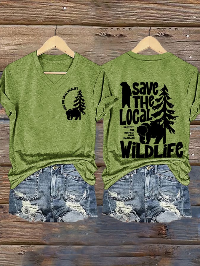 Women's Save The Local Wildlife Print V-Neck T-Shirt