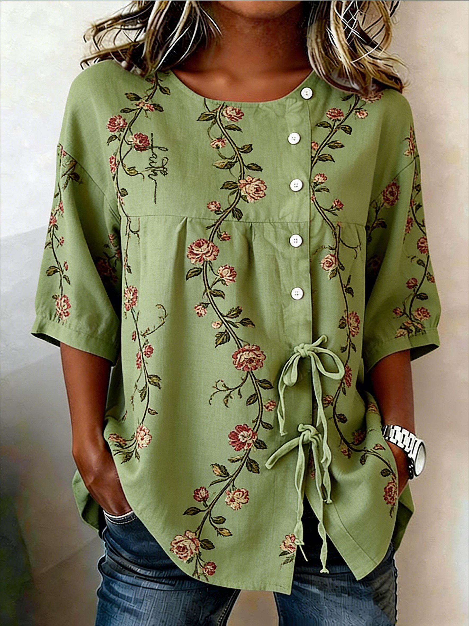 Women's Retro Faith Floral Print Top