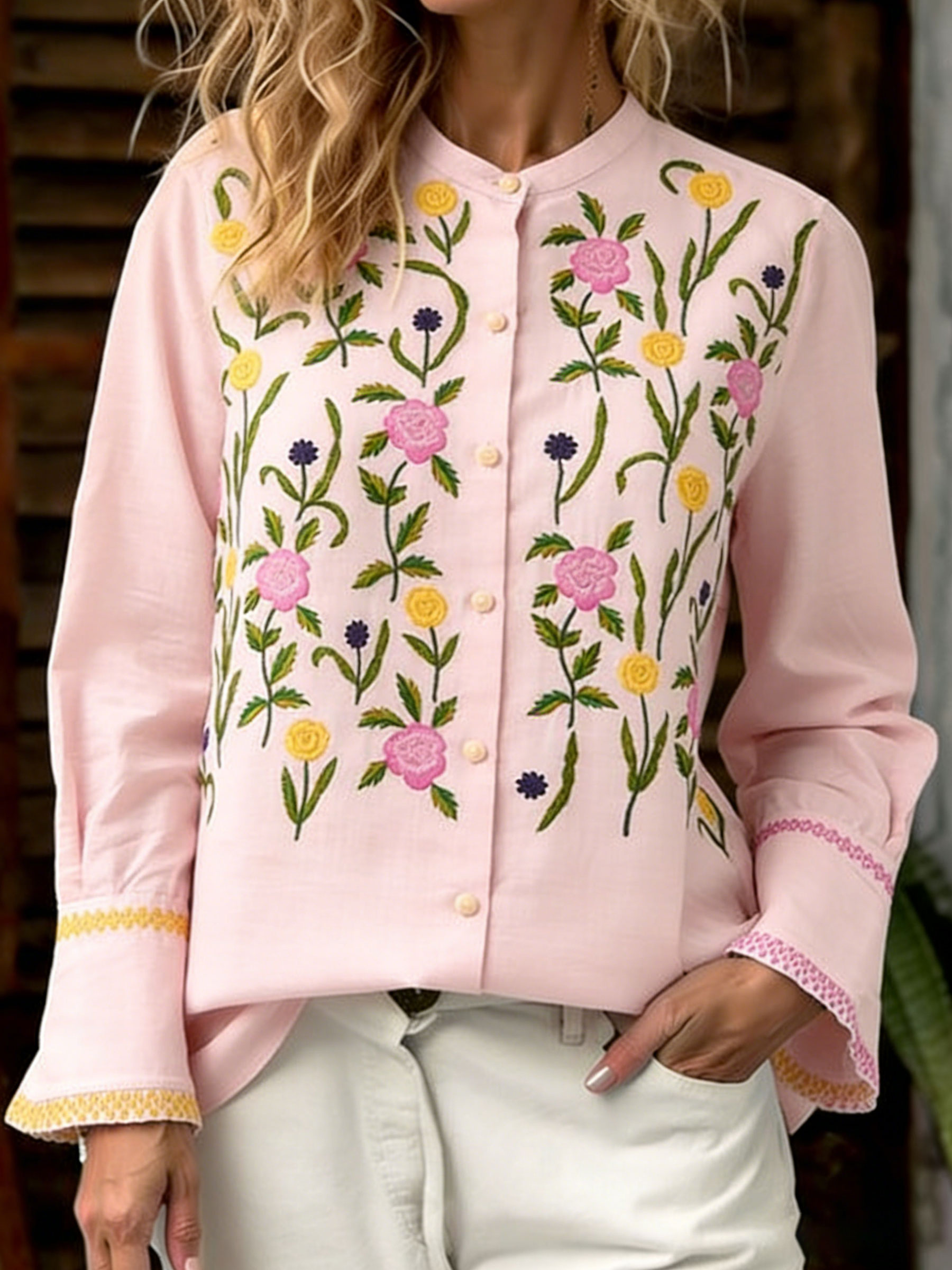 Women's Flower Chic Casual Long Sleeve Blouse Shirt