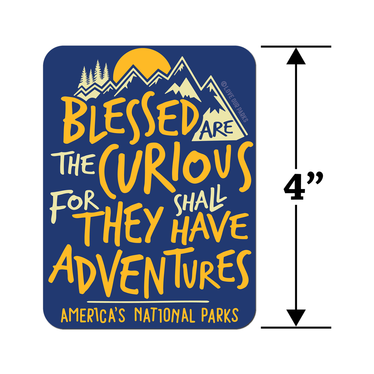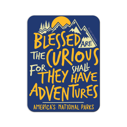 Full text reads: Blessed Are The Curious For They Shall Have Adventures - America's National Parks