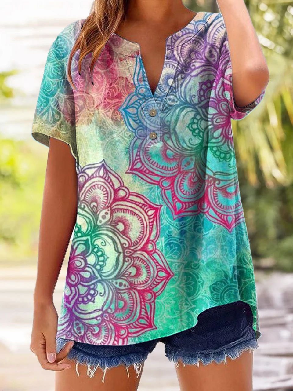 Women's Casual Vintage Floral Art Cotton and Linen Shirt