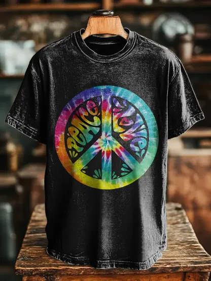 Hippie Peace Love Tie Dye Unisex Vintage Art Print Casual T-shirt