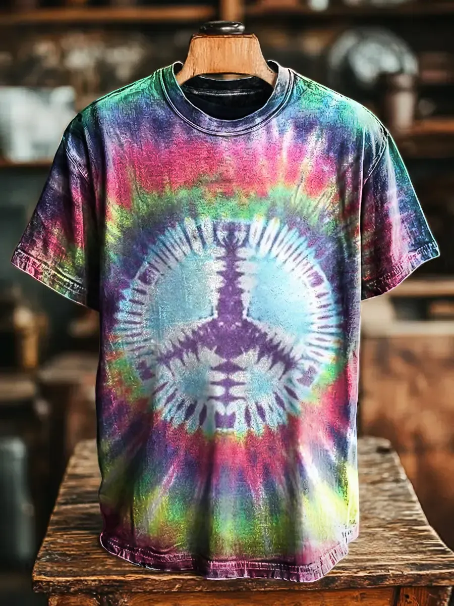 National Tie Dye Hippie Unisex Vintage Art Print Casual T-shirt