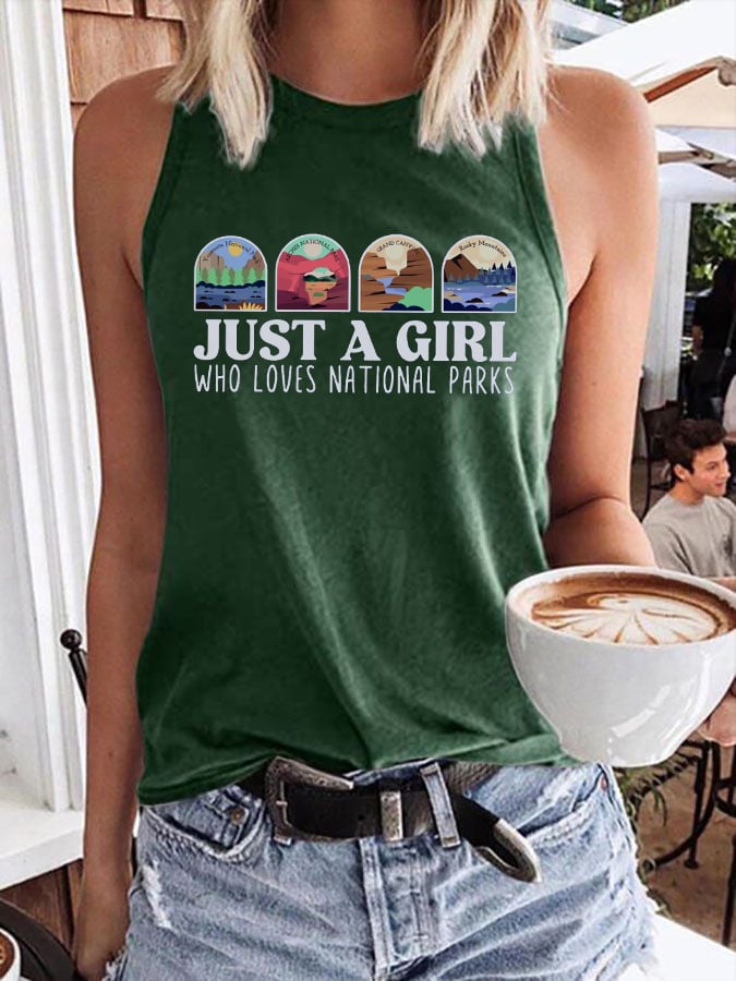 Women's Just A Girl Who Loves National Parks Print Crew Neck Tank Top