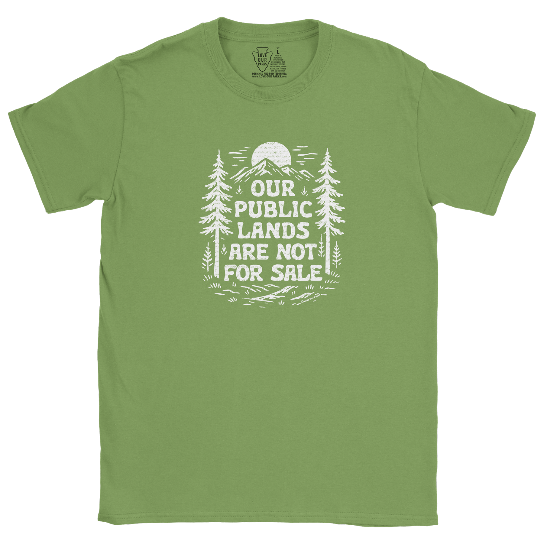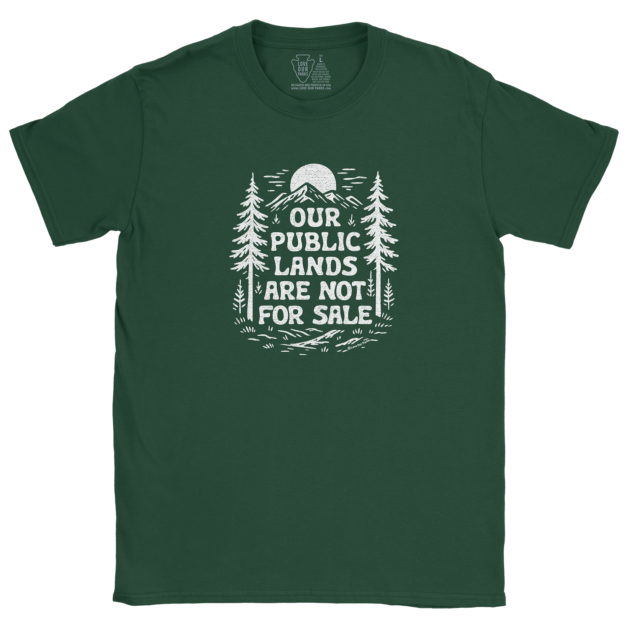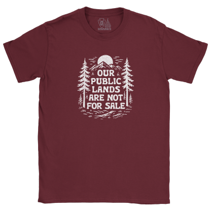 Show your support for conservation with our Public Lands Are Not For Sale Tee. Made from 100% cotton, the design features bold forest and mountain imagery alongside a powerful message to protect America’s public lands.