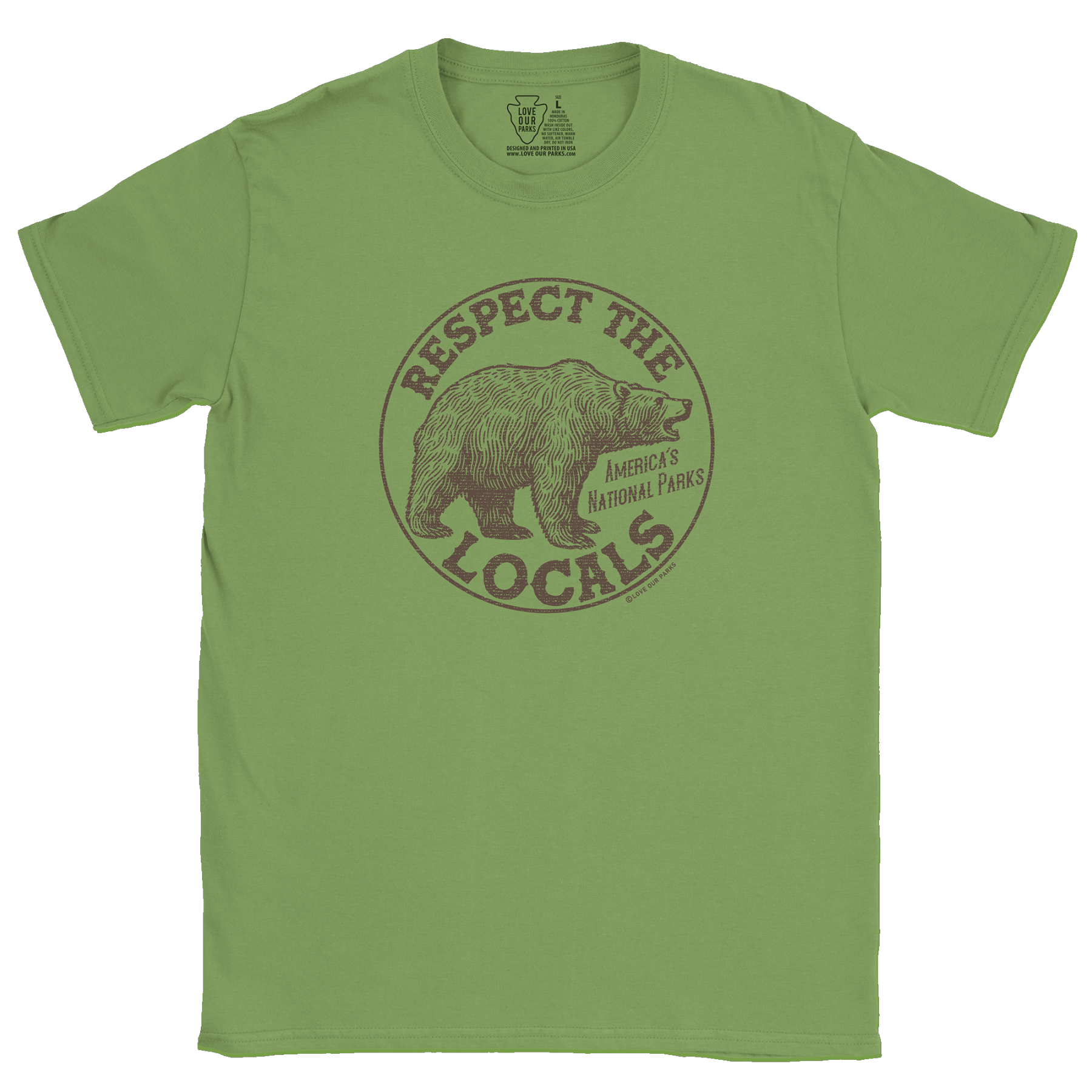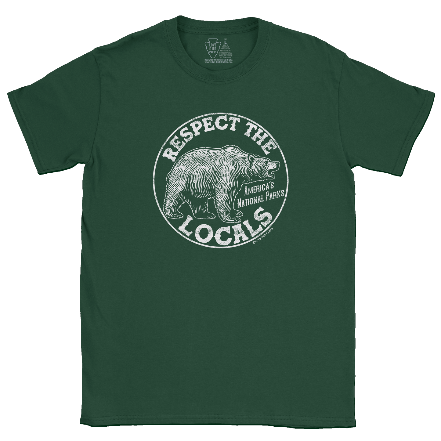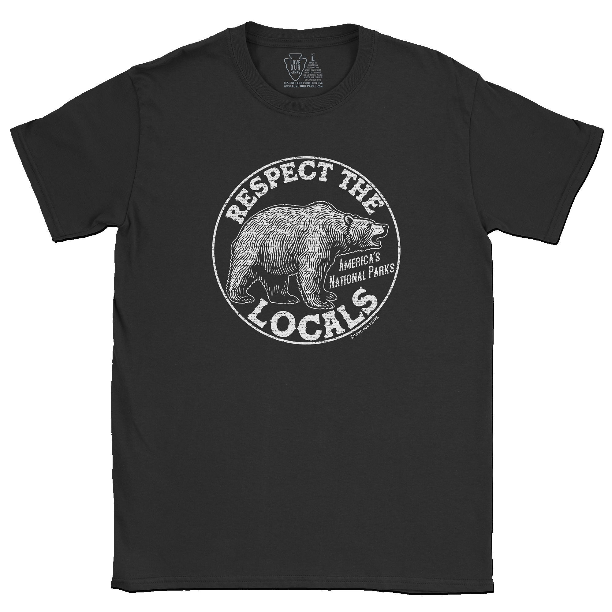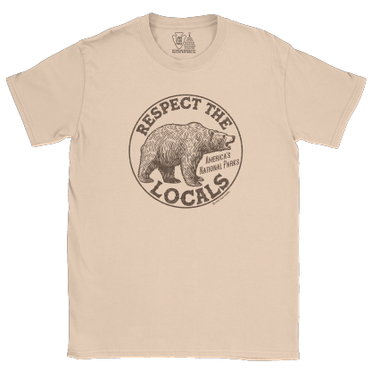 Embrace your love for nature with our Respect The Locals Grizzly Tee. Made from 100% cotton, this tee features the message "Respect The Locals - America's National Parks".