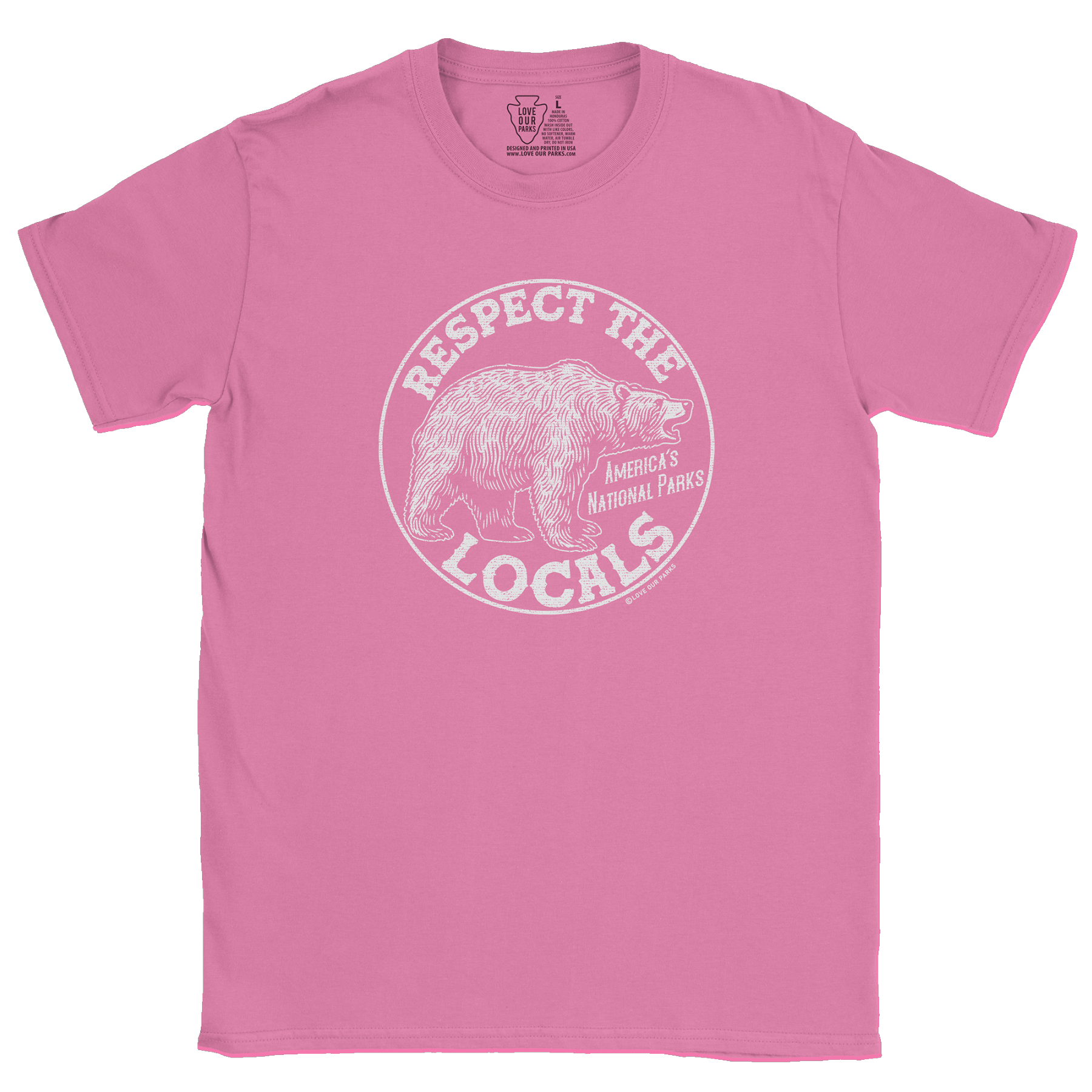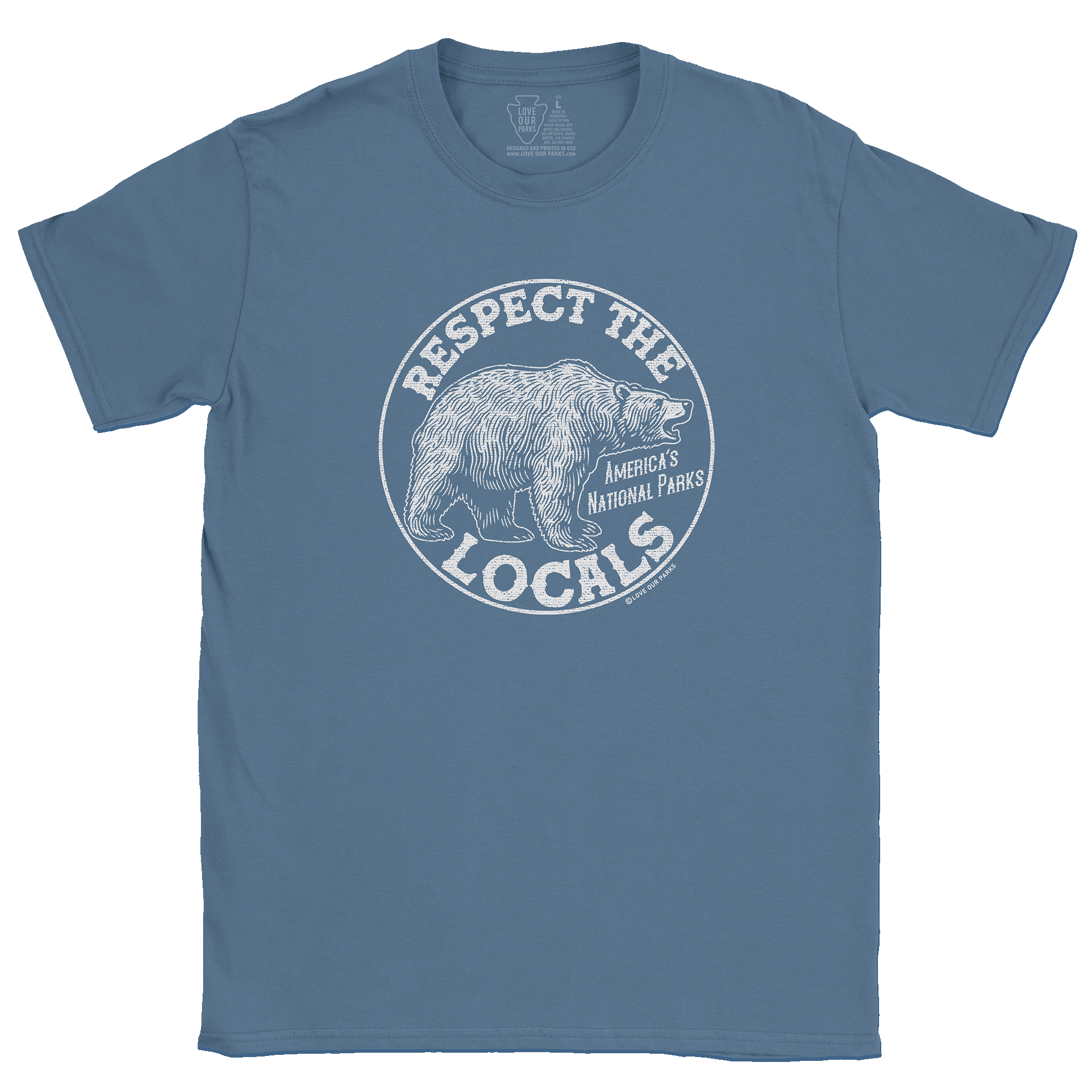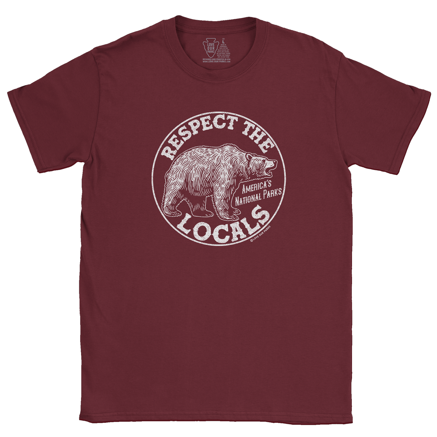 Embrace your love for nature with our Respect The Locals Grizzly Tee. Made from 100% cotton, this tee features the message "Respect The Locals - America's National Parks".