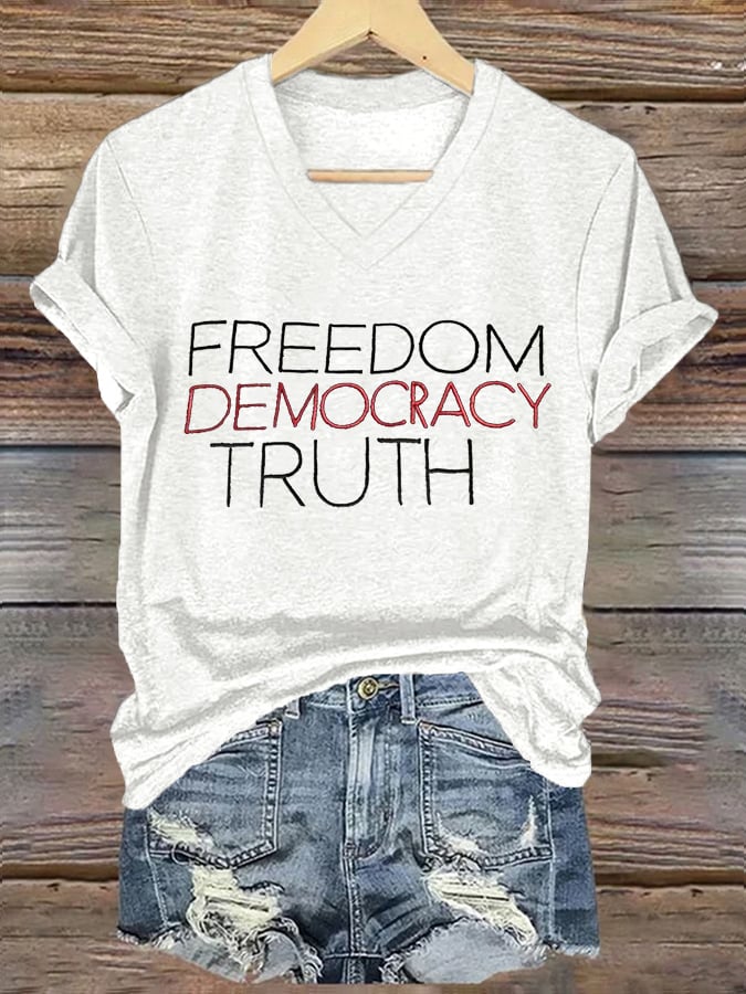 Women's FDT “Freedom, Democracy, Truth ” Print Casual T-Shirt
