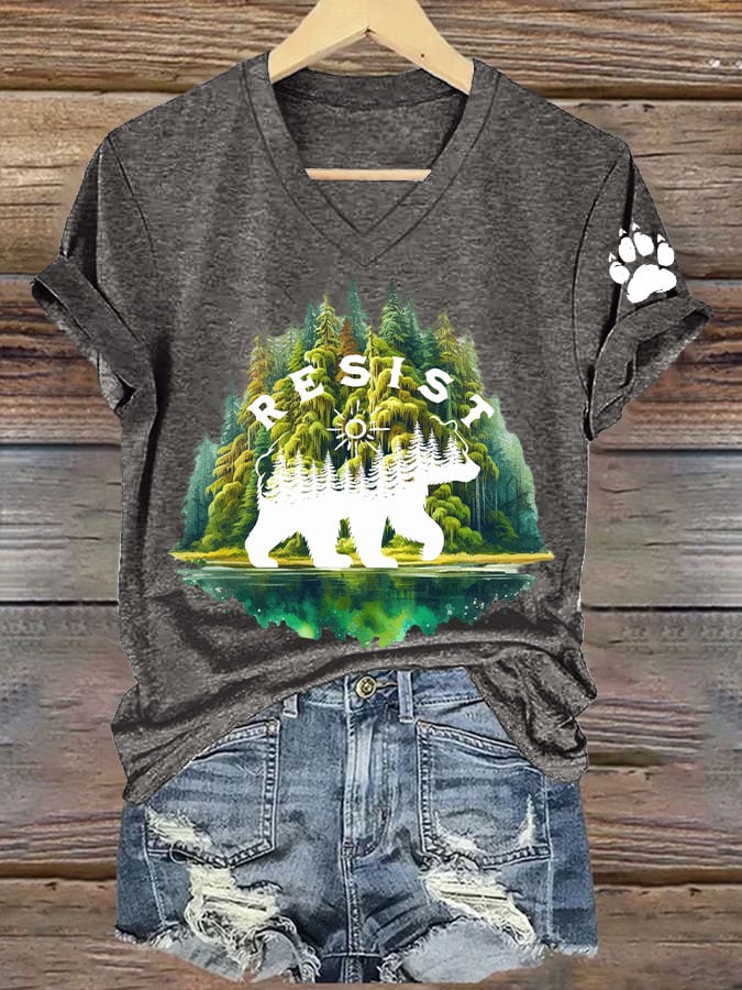 Women's Resist Save Our Parks Printed V Neck T-shirt