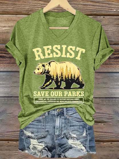 Women's Resist Bear Save Our Parks Printed T-Shirt