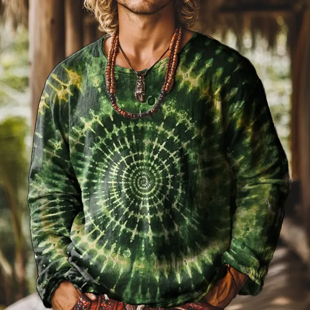 Ethnicity Dark Green Tie Dye Vintage Print Casual Cotton Shirt