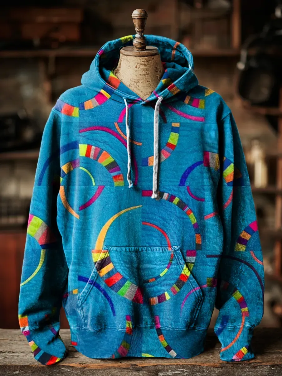 Unisex Abstract Geometry Art Print Hooded Pocket Sweatshirt