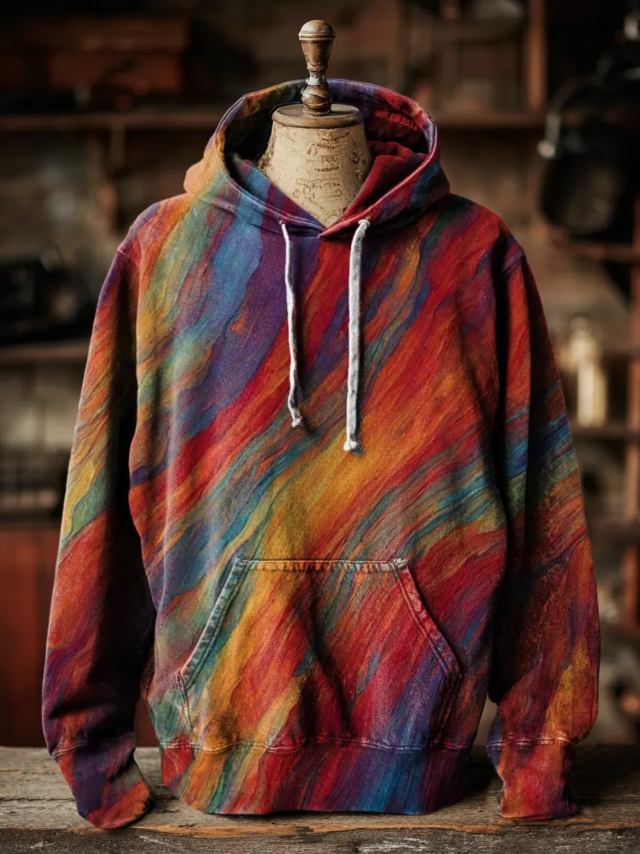 Unisex Ethnic Color Art Print Hooded Pocket Sweatshirt