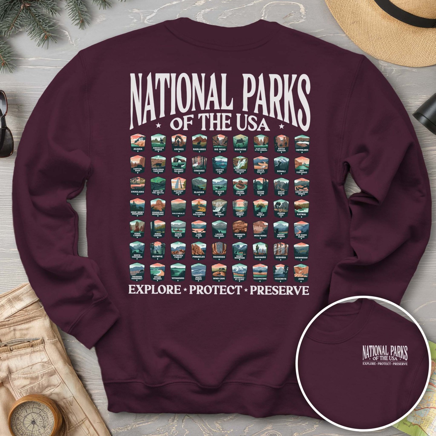 National Parks of the USA 63 Badges Front/Back Print Sweatshirt