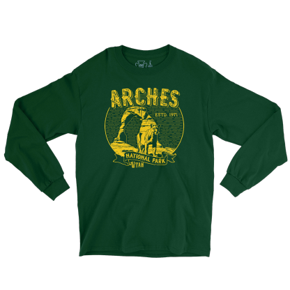Show your love for Utah's Arches National Park with our vintage inspired long sleeve tee! Made from 100% cotton, this unisex shirt is perfect for any adventure. Designed and printed in the USA so you can look good and feel good about supporting US businesses.