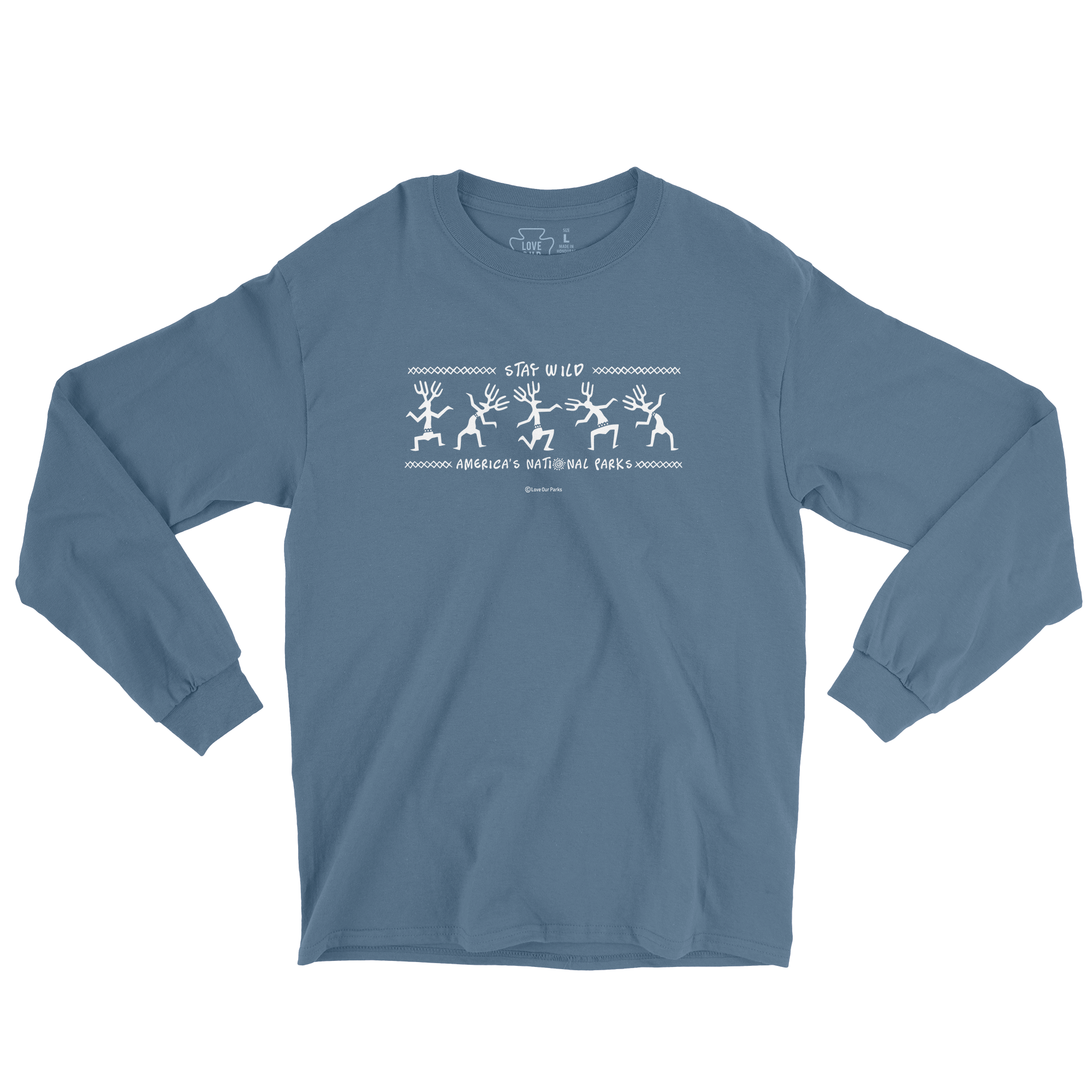 Stay wild National Parks! Show some love and support for our National Parks in this petroglyphs inspired long sleeve t-shirt.