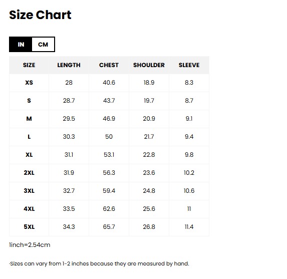 • Size:XS, S, M, L, XL, XXL, 3XL, 4XL, 5XL