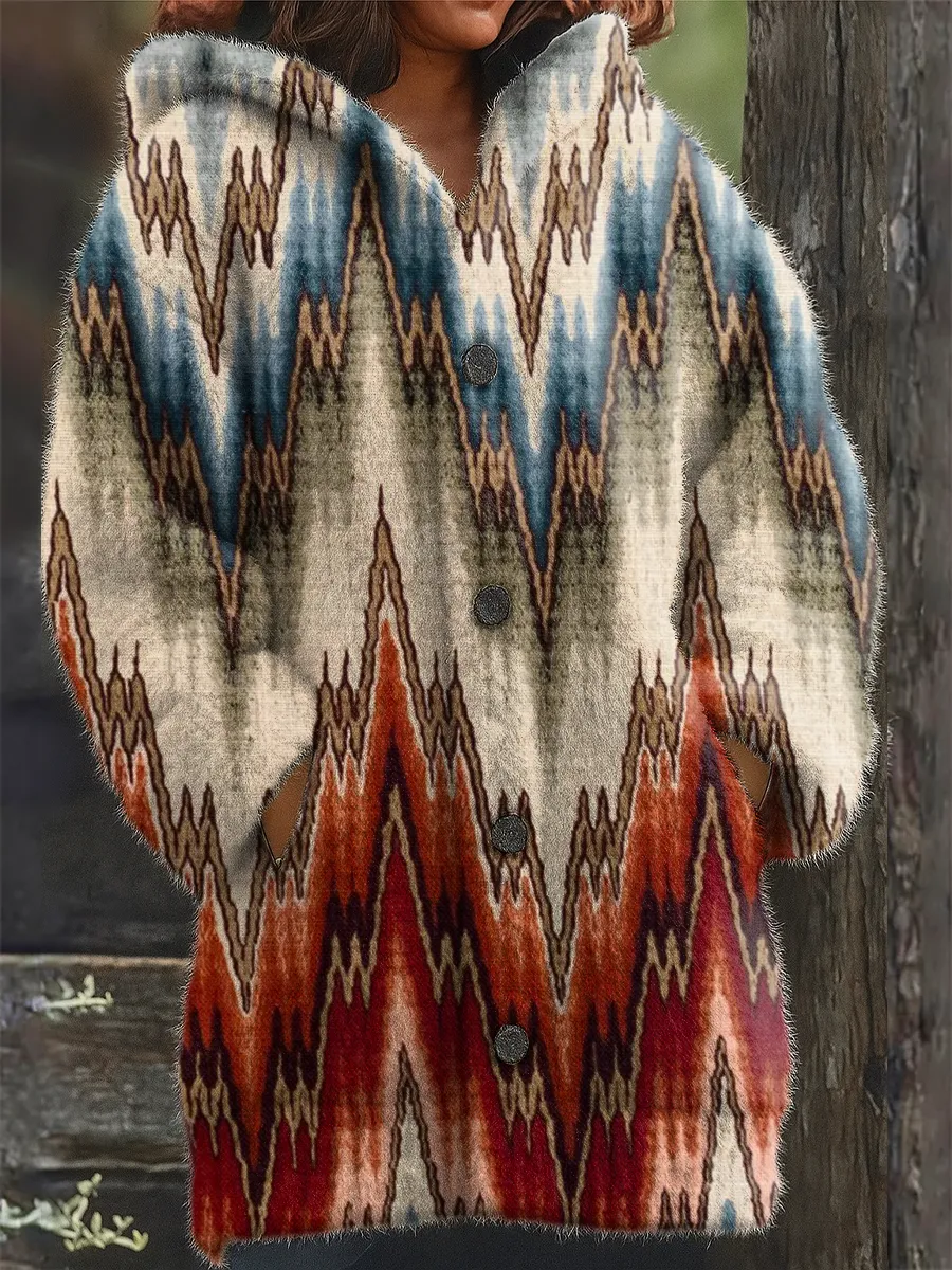 Unisex Retro Ethnic Art Print Casual Long-Sleeved Hooded Fleece Jacket