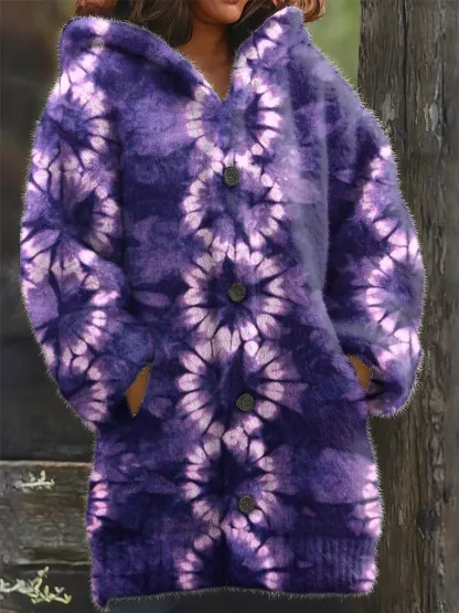 Unisex Tie-Dye Art Print Casual Long-Sleeved Hooded Fleece Jacket