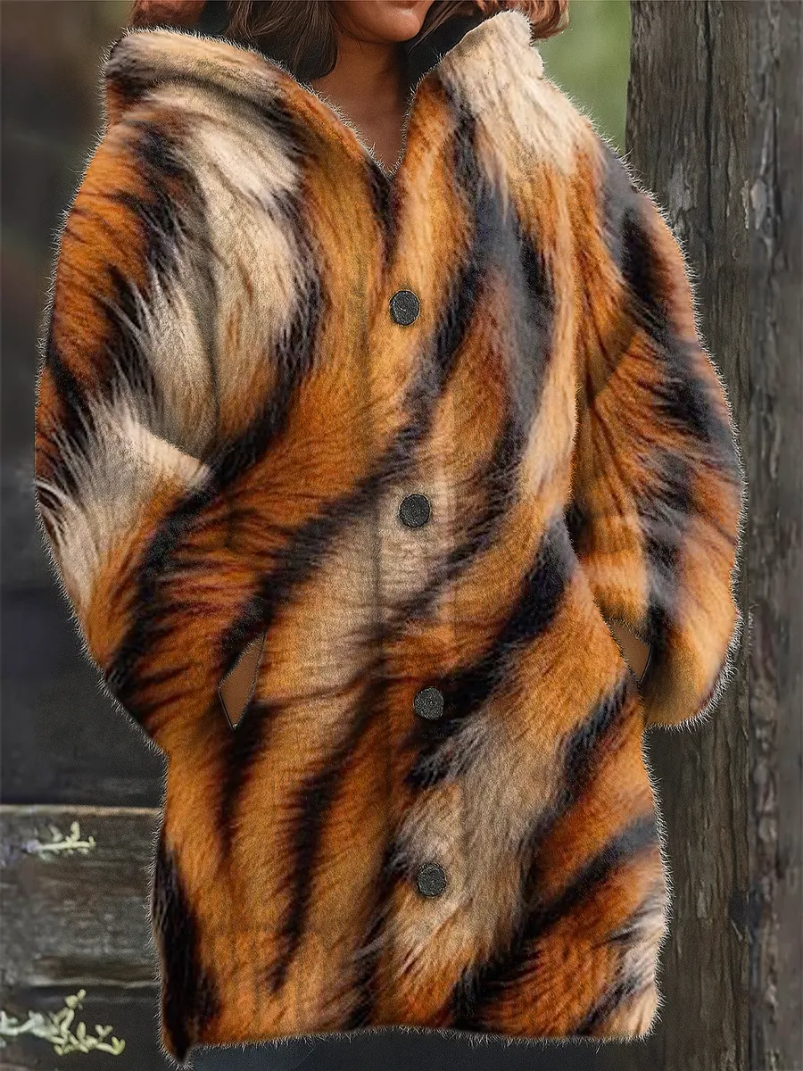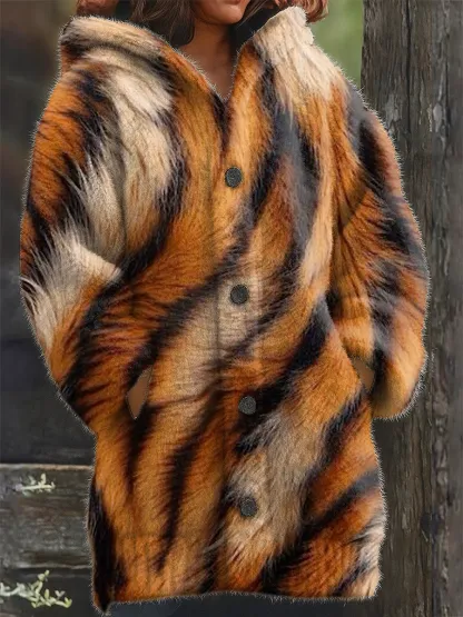 Unisex Tiger Stripe Art Print Casual Long-Sleeved Hooded Fleece Jacket