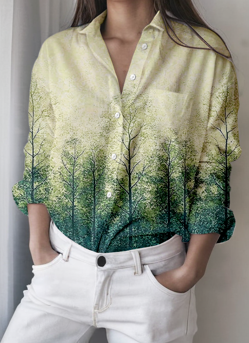 Women's Casual Gradient Forest Print Shirt
