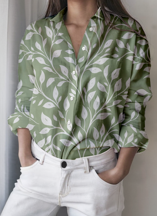 Women's Leaf Print Casual Shirt