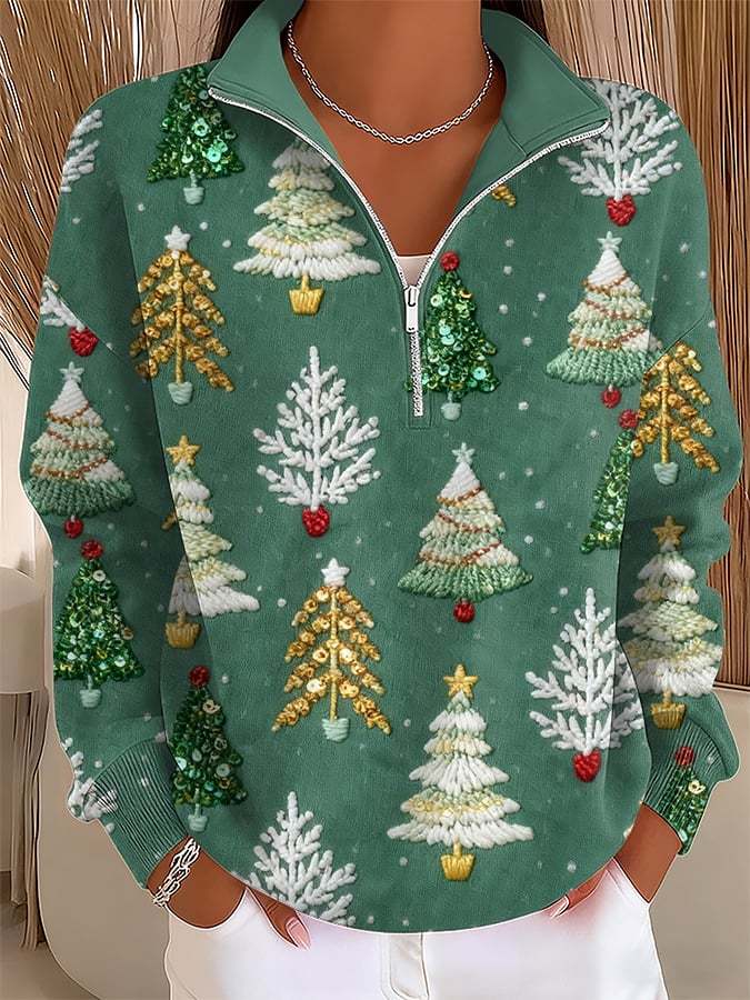Women's Casual Christmas Zipper Sweatshirt