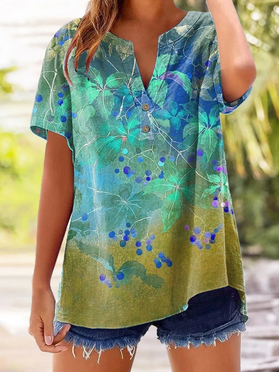 Women's Casual Retro Plant Flower Print Cotton And Linen Shirt