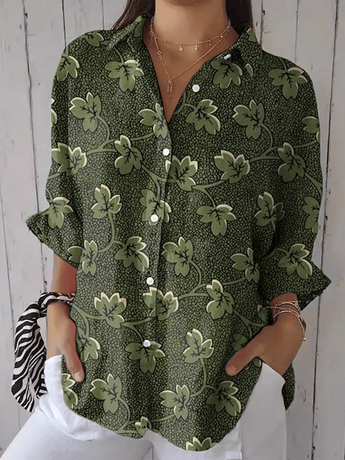 Women's Forest Floral Print Casual Lapel Shirt
