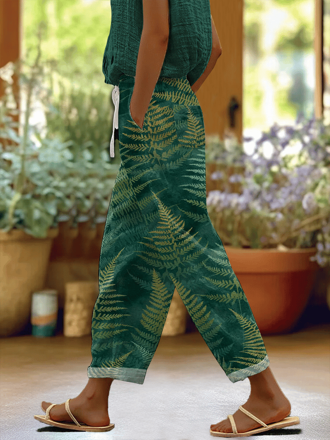 Women's Forest Floral Print Casual Pants (With Pockets)