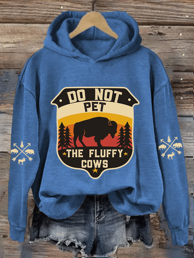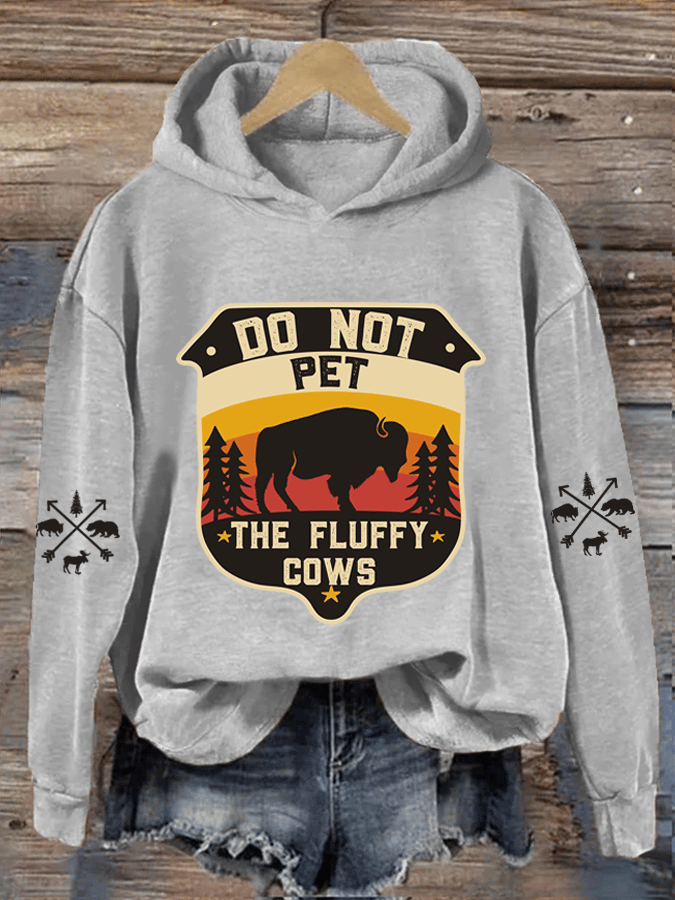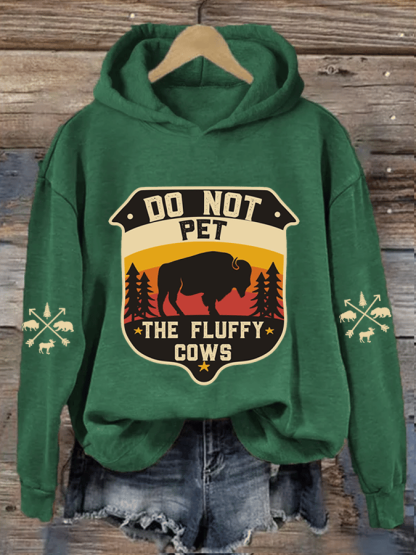 Women's National Park Do Not Pet Flufey Cows Heat Transfer Hooded Sweatshirt