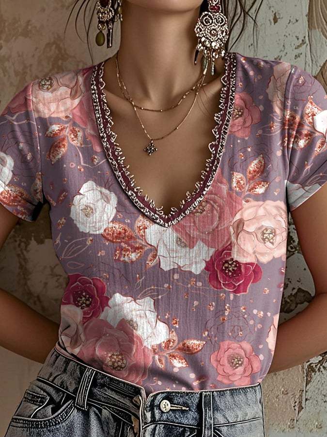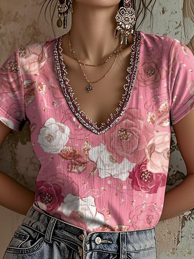 Women's Pink Art Printed T-Shirt