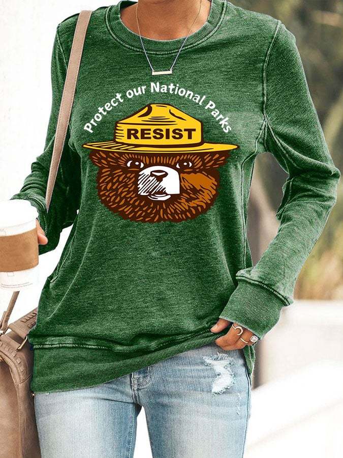 Women's Protect Our National Parks Print Round Neck Sweatshirt