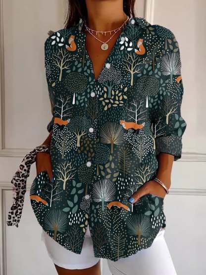 Women's Retro Protect Forest Animals Print Casual Shirt