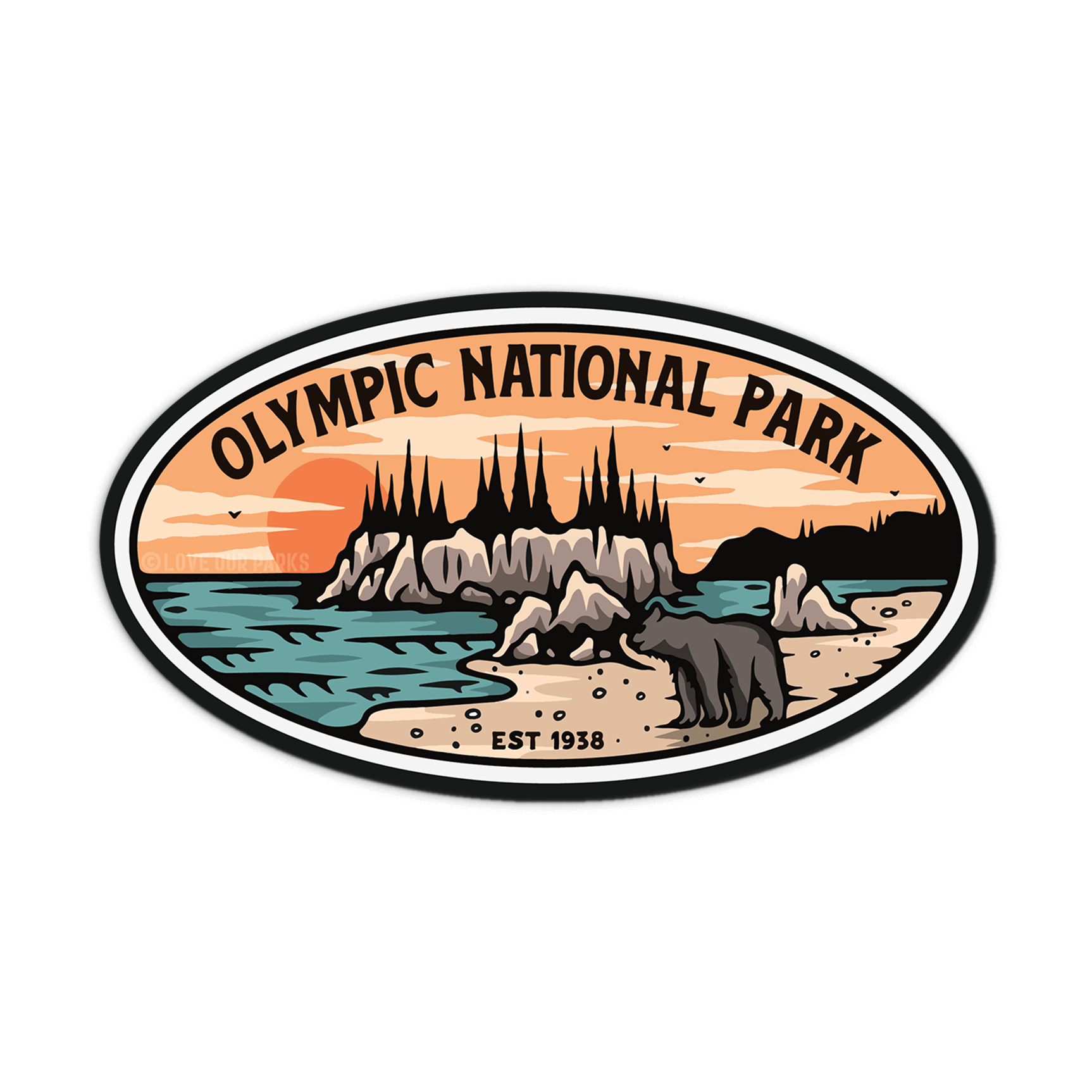 Take a trip down memory lane with our Olympic National Park retro inspired sticker! Made from durable, waterproof material, this sticker proudly displays the park's establishment date of 1938. Perfect for adding a touch of nostalgia to your water bottle, car, or camper.