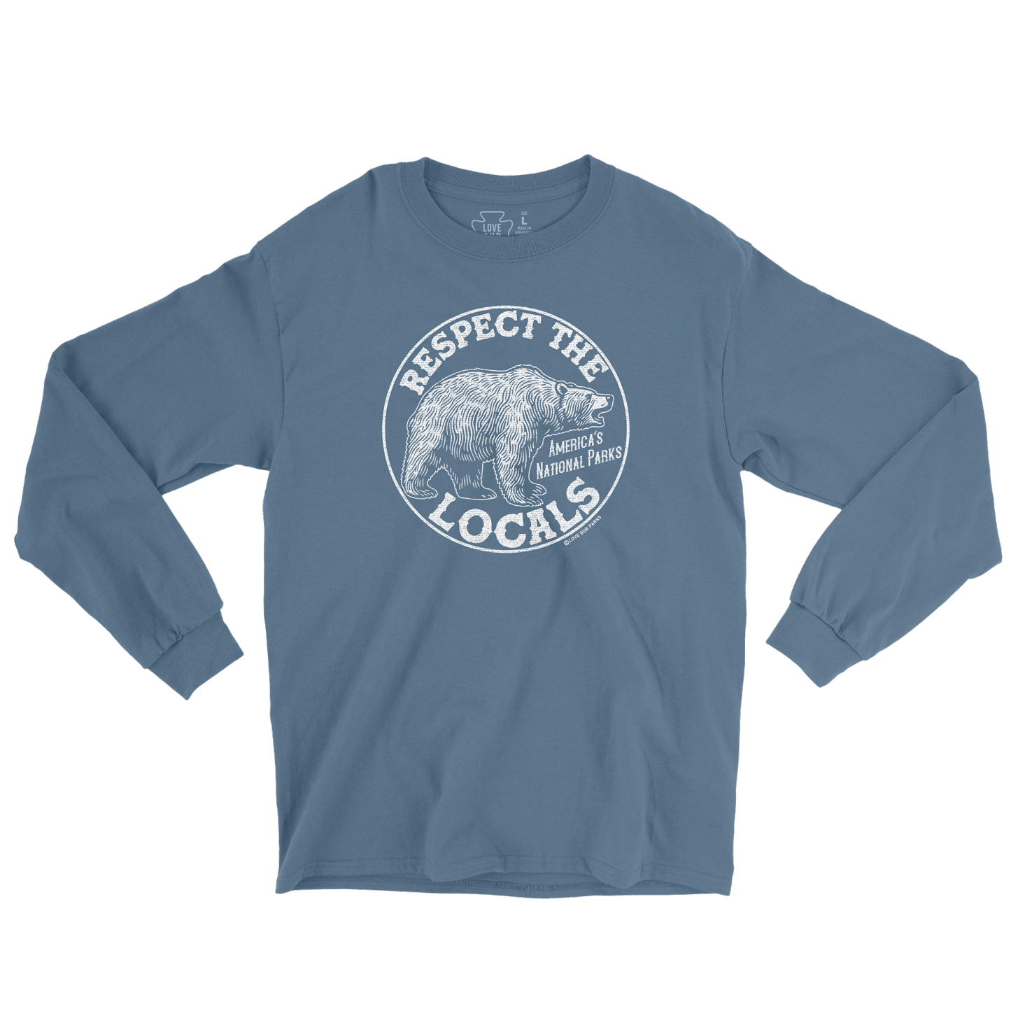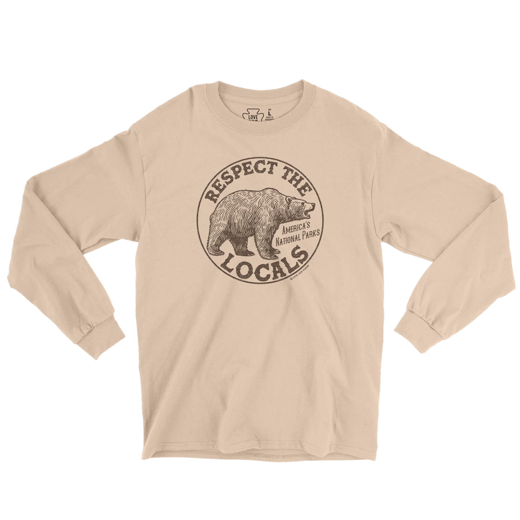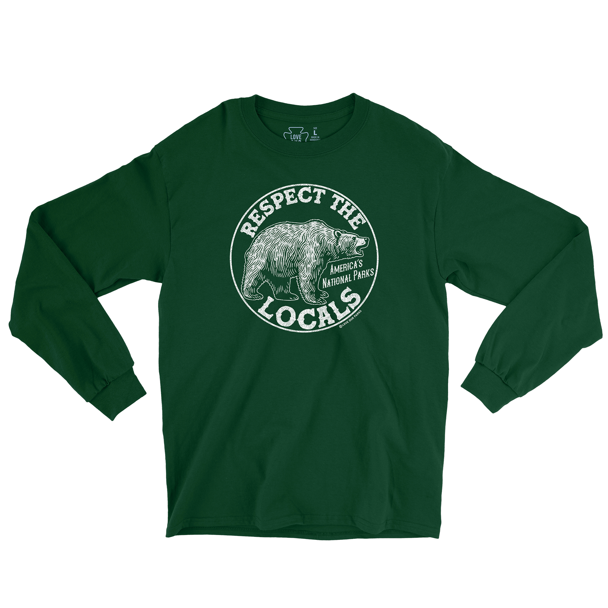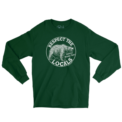 Embrace your love for nature with our Respect The Locals Grizzly Long Sleeve Tee. Made from 100% cotton, this tee features the message "Respect The Locals - America's National Parks".