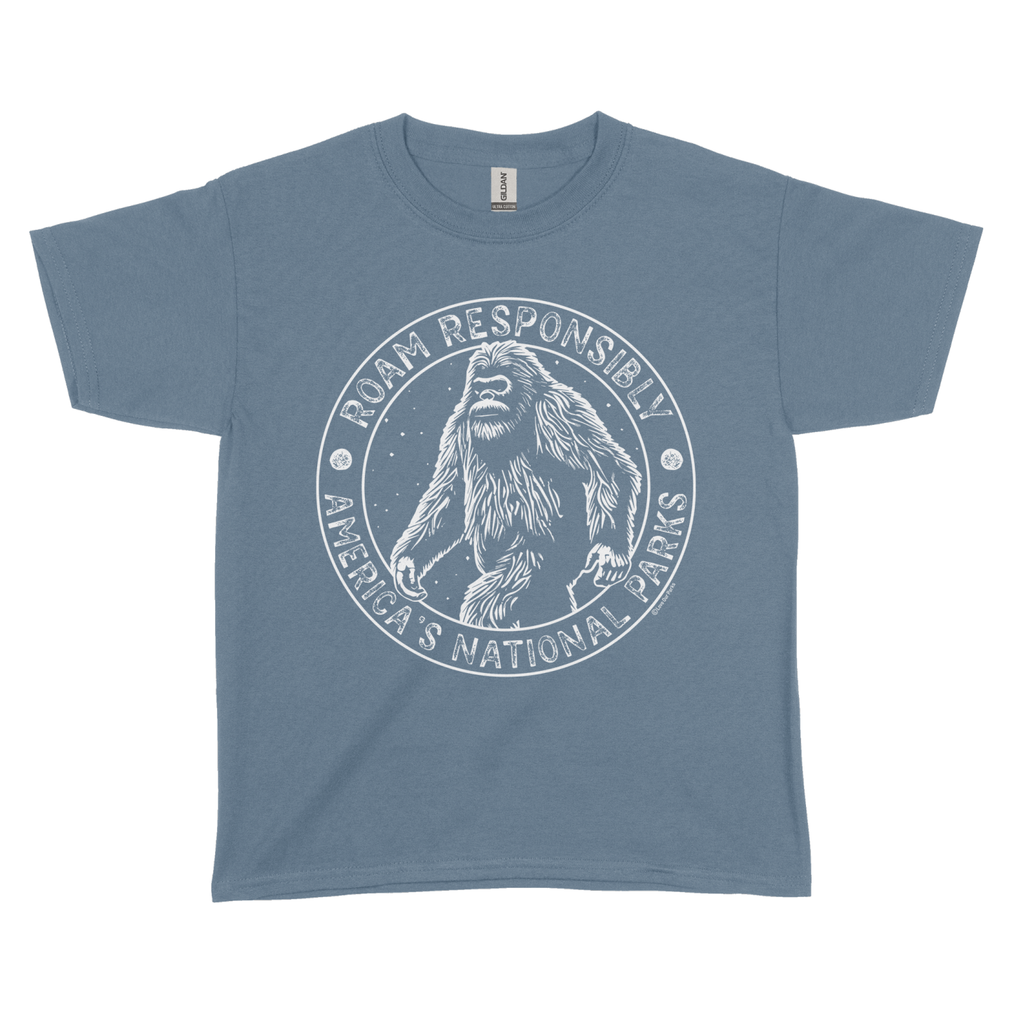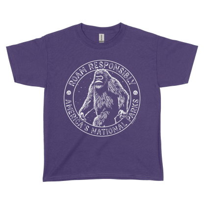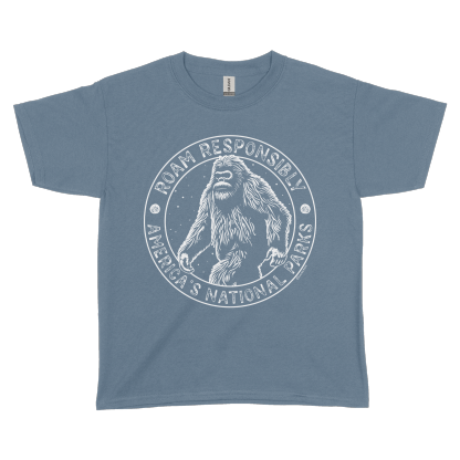 Embrace your love for nature with our Roam Responsibly Bigfoot Youth Tee. Made from 100% cotton, this tee features the iconic Bigfoot and the message "Roam Responsibly - America's National Parks".