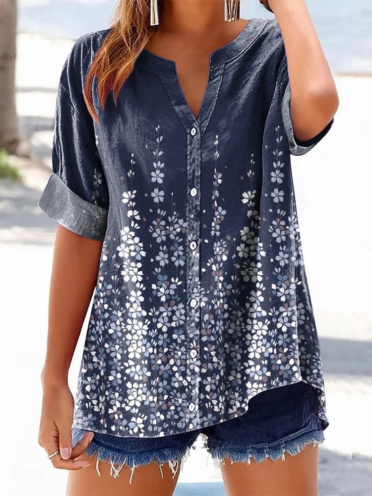 Women's Casual Retro Floral Print Shirt