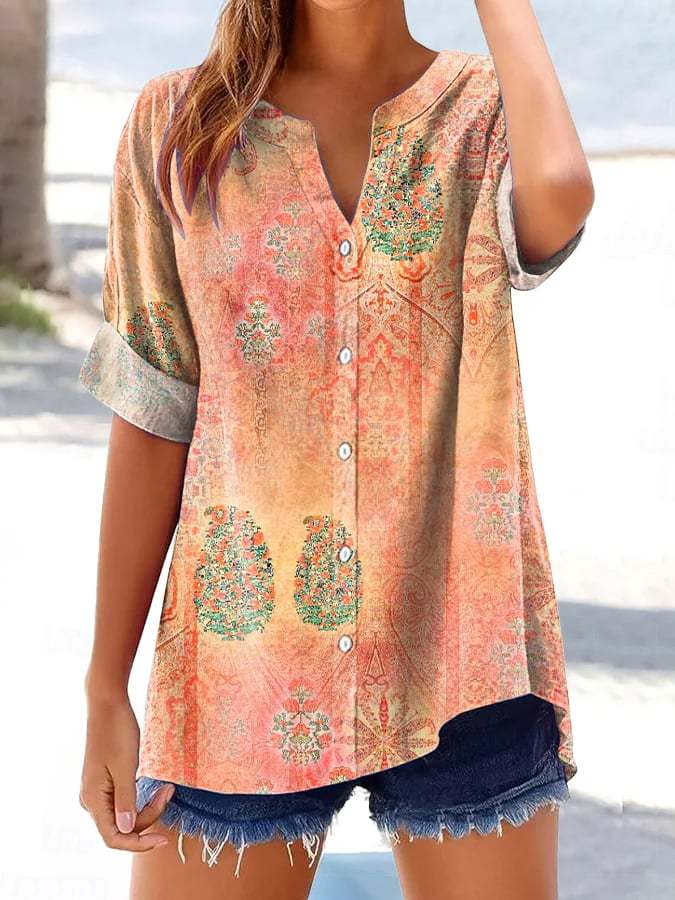 Women's Casual Retro Floral Print Shirt